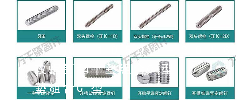 開槽平端緊定螺釘 Slotted set screws with flat point 開槽錐端緊定螺釘 Slotted set screws with cone point 六角螺母 Hexagon nuts 方螺母-C Square nuts 六角頭螺釘 Hexagon screws 六角頭圓柱端 緊定螺釘 Hexagon set