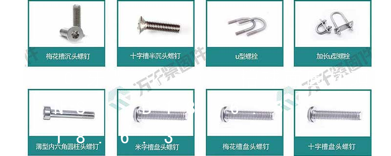1.機(jī)螺釘 2.自攻螺釘 3.鉆尾螺釘 4.墻板釘 5.纖維板釘 6.木螺釘7.六角木螺釘 8.不脫出螺釘 9.組合螺釘 10.微型螺釘 11.家具螺釘 12.電子螺釘 13.鏈帶螺釘頭型 :1.六角頭(hexagon head)2.六角頭法蘭面(hexagon head with flange)3.方頭(square head)4.T形頭T head (hammer head5.