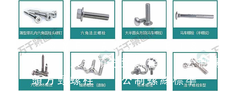 公制螺絲于螺絲型號后方,有時會注明螺絲牙距,但因為標準規(guī)范, 通常不提.公制螺絲, 直接標示螺絲長度, 單位為mm. 螺絲之總長度標示, 只計算頭部以下之長度, 不含頭部高度. 但平頭螺絲例外, 其螺絲之總長度標示含頭部高度 方頭螺栓c級gb8-88沉頭方頸螺栓gb10-88沉頭帶榫螺拴gb11-88半圓頭方頸螺栓gb12-88半圓頭帶榫螺栓gb13-88大半圓頭方頸螺栓c級gb14-1998大半圓頭帶榫螺栓gb15-88六角頭鉸制孔用螺栓gb27-88六角頭螺桿帶孔鉸制孔