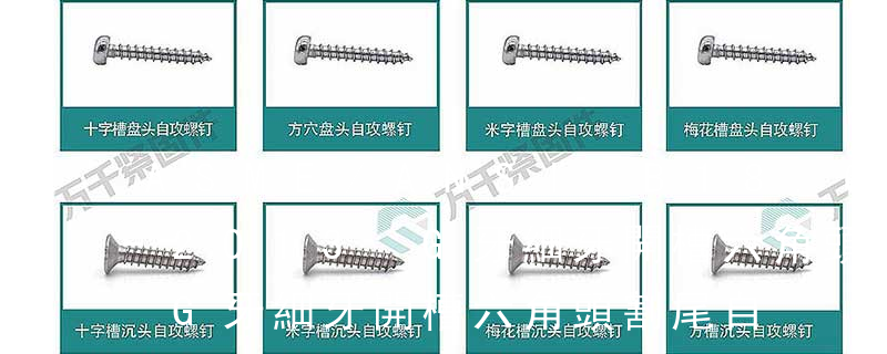 1、Flat:平頭 (鎖入后,頂部與工作件齊平)2、Oval:色拉頭、O頭、半沉頭 3、Round:圓頭 4、Pan:圓扁頭 5、Truss:大圓扁頭 6、Hex:六角頭 A-5:Finish Code/外觀處理。公制自攻螺絲 :于品名后方直接標示 Tapp 1.螺絲釘按照名稱可分為 機螺釘、自攻螺釘、鉆尾螺釘、墻板釘、纖維板釘、木螺釘、六角木螺釘、不脫出螺釘、組合螺釘、微型螺釘、家具螺釘、電子螺釘 2.按照頭型可分為 1)六角頭(hexagon head)2)六角頭法蘭面(hexagon