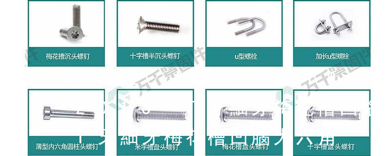 六角頭螺釘Hex cap screw與大六角螺栓Hex bolt 顧名思義為頭部為六角型的外螺紋扣件,設計為使用扳手轉動。依照ASME B18.2.1標準,六角頭螺釘(Hex cap screw)較一般的大六角螺栓(Hex bolt)的頭高和桿長公差小,因此ASME B18.2.1六角 1.機螺釘 2.自攻螺釘 3.鉆尾螺釘 4.墻板釘 5.纖維板釘 6.木螺釘7.六角木螺釘 8.不脫出螺釘 9.組合螺釘 10.微型螺釘 11.家具螺釘 12.電子螺釘頭型:1.六角頭(hexagon head) 2.六角頭法蘭面(hexagon head with flange) 3.