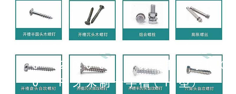 (鐵板牙自攻螺絲) B-2: Plastic Tapping Screw. (塑膠用,自攻螺絲) C: Wooden Screw : 木工螺絲 D: Drywall Screw :水泥墻螺絲 E: Self Drilling Screws鉆尾螺絲(不銹鋼鉆尾螺絲,復合材料鉆尾螺絲) F:膨脹螺絲,四片膨脹螺絲又 3. 螺釘:也是由頭部和螺桿兩部分構成的一類緊固件,按用途可以分為三類:機器螺釘、緊定螺釘和特殊用途螺釘。機器螺釘主要用于一個緊定螺紋孔的零件,與一個帶有通孔的零件之間的緊固連接,不需要螺母配合(這種連接形式稱為螺釘連接,也屬于