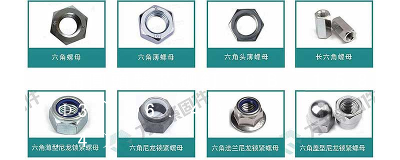 擊芯鉚釘按照釘帽帽檐的形狀可分為扁圓頭擊芯鉚釘和沉頭擊芯鉚釘,根據材質組合的不同,可以分為全鋁擊芯鉚釘、鋁鋼擊芯鉚釘、全不銹鋼擊芯鉚釘、鋼鋼擊芯鉚釘、鋁不銹鋼擊芯鉚釘、塑料擊芯鉚釘等。 4. 螺母:帶有內螺紋孔,形狀一般呈顯為扁六角柱形,也有呈扁方柱形或扁圓柱形,配合螺栓、螺柱或機器螺釘,用于緊固連接兩個零件,使之成為一件整體。螺母的特殊類別 高強度自鎖螺母 為自鎖螺母的一個分類,具有強度高,