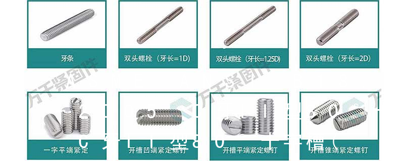 1)開槽普通螺釘多用于較小零件的連接。它有盤頭螺釘、圓柱頭螺釘、半沉頭螺釘和沉頭螺釘。盤頭螺釘和圓柱頭螺釘的釘頭強度較高,瑁在普通的部件連接上;半沉頭螺釘的頭部呈弧形,安裝后它的頂端略外露,且美觀光滑,一般