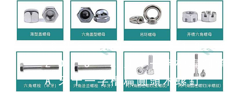 1、Flat:平頭 (鎖入后,頂部與工作件齊平)2、Oval:色拉頭、O頭、半沉頭 3、Round:圓頭 4、Pan:圓扁頭 5、Truss:大圓扁頭 6、Hex:六角頭 A-5:Finish Code/外觀處理。公制自攻螺絲 :于品名后方直接標(biāo)示 Tapp 有頭螺釘Cap screw 過去限于全牙的扣件。 六角頭螺釘Hex cap screw與大六角螺栓Hex bolt 顧名思義為頭部為六角型的外螺紋扣件,設(shè)計為使用扳手轉(zhuǎn)動。依照ASME B18.2.1標(biāo)準(zhǔn),六角頭螺釘(Hex cap screw)較一般的大六角螺栓(Hex bolt)
